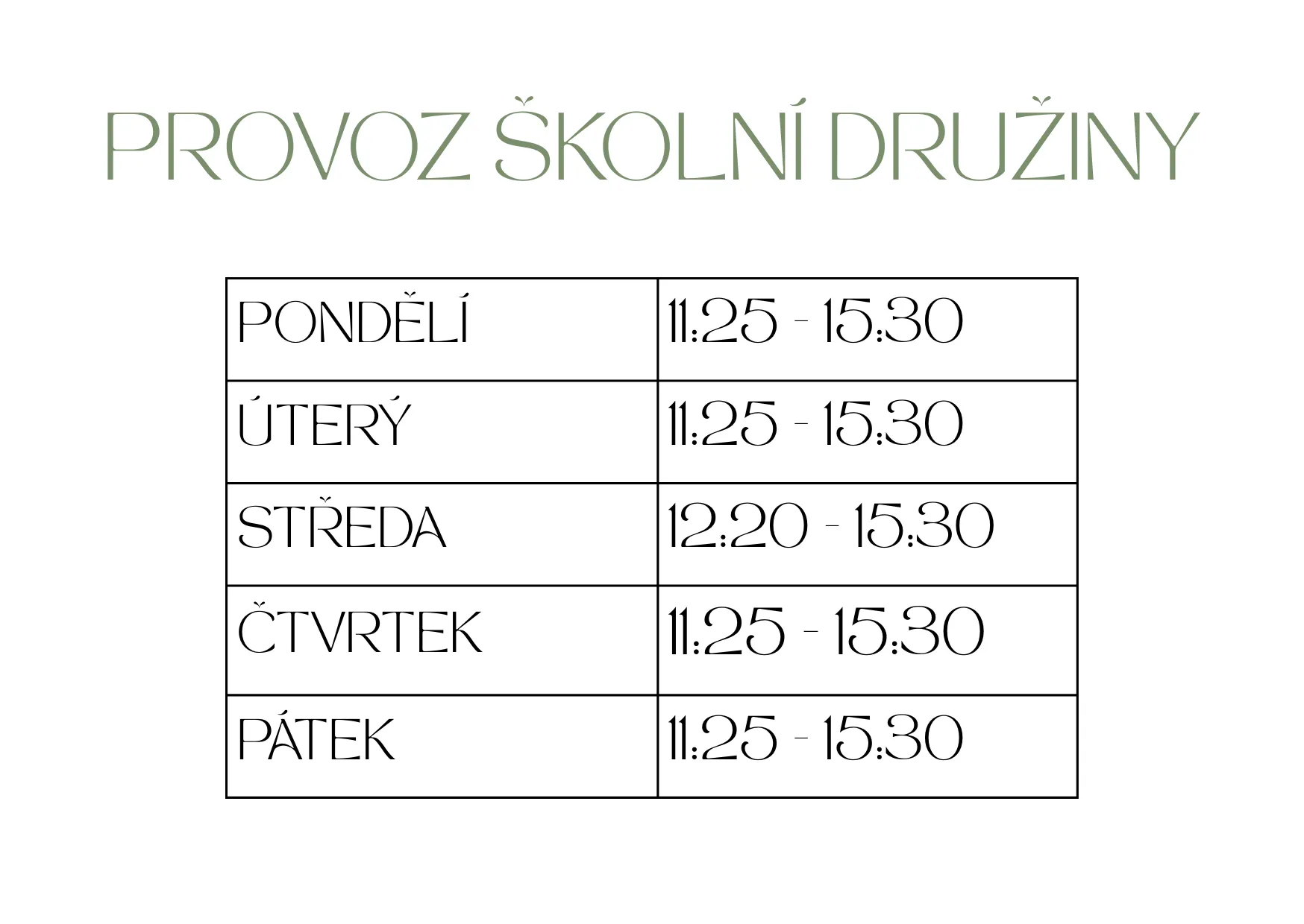 Provoz školní družiny